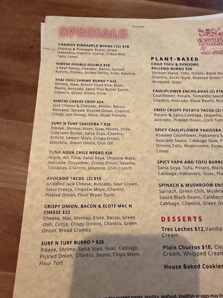 Shrimp, beef chorizo, iceberg, avocado, avo sauce, salsa tatemada, crema, queso fresco (2)